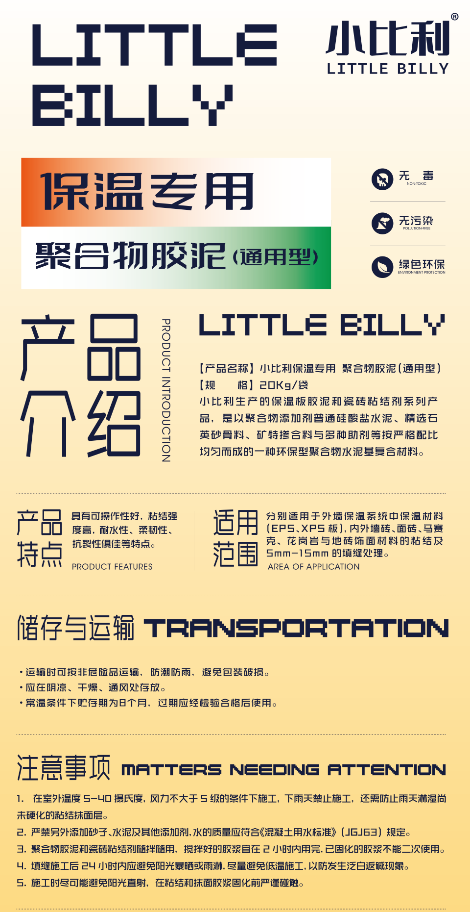 小比利聚合物保溫砂漿簡(jiǎn)化了龐雜的保溫膠泥規(guī)格,使粘結(jié)與抹面兩種形式合二為一,實(shí)現(xiàn)了“粘抹一體化”的獨(dú)創(chuàng)產(chǎn)品,也在很大程度上有效降低了存放、運(yùn)輸及施工難度。品質(zhì)方面同小比利瓷磚粘結(jié)劑一樣,采用高規(guī)格水泥與膠粉進(jìn)行搭配,同時(shí)添加纖維成分,抗裂保水性能優(yōu)異。